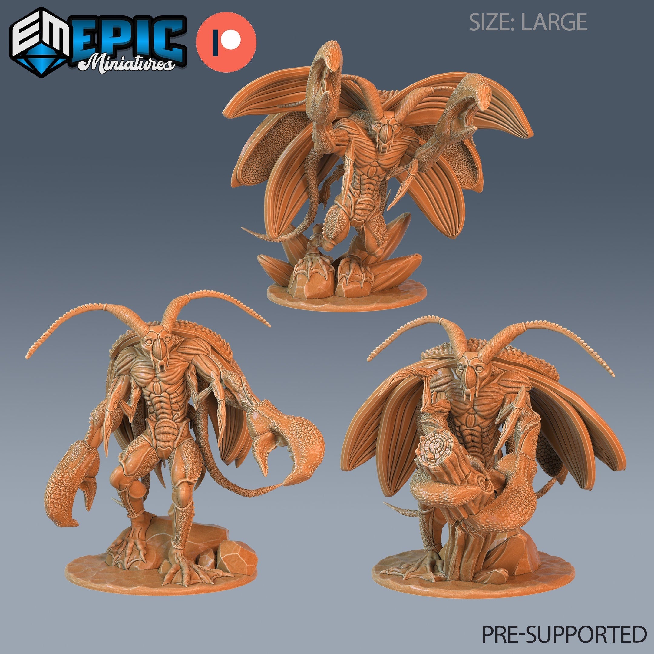 Lobster cockroach set (3 versions) | aqua tribe warrior | underwater ocean encounter | epic miniatures | unpainted miniature in resin