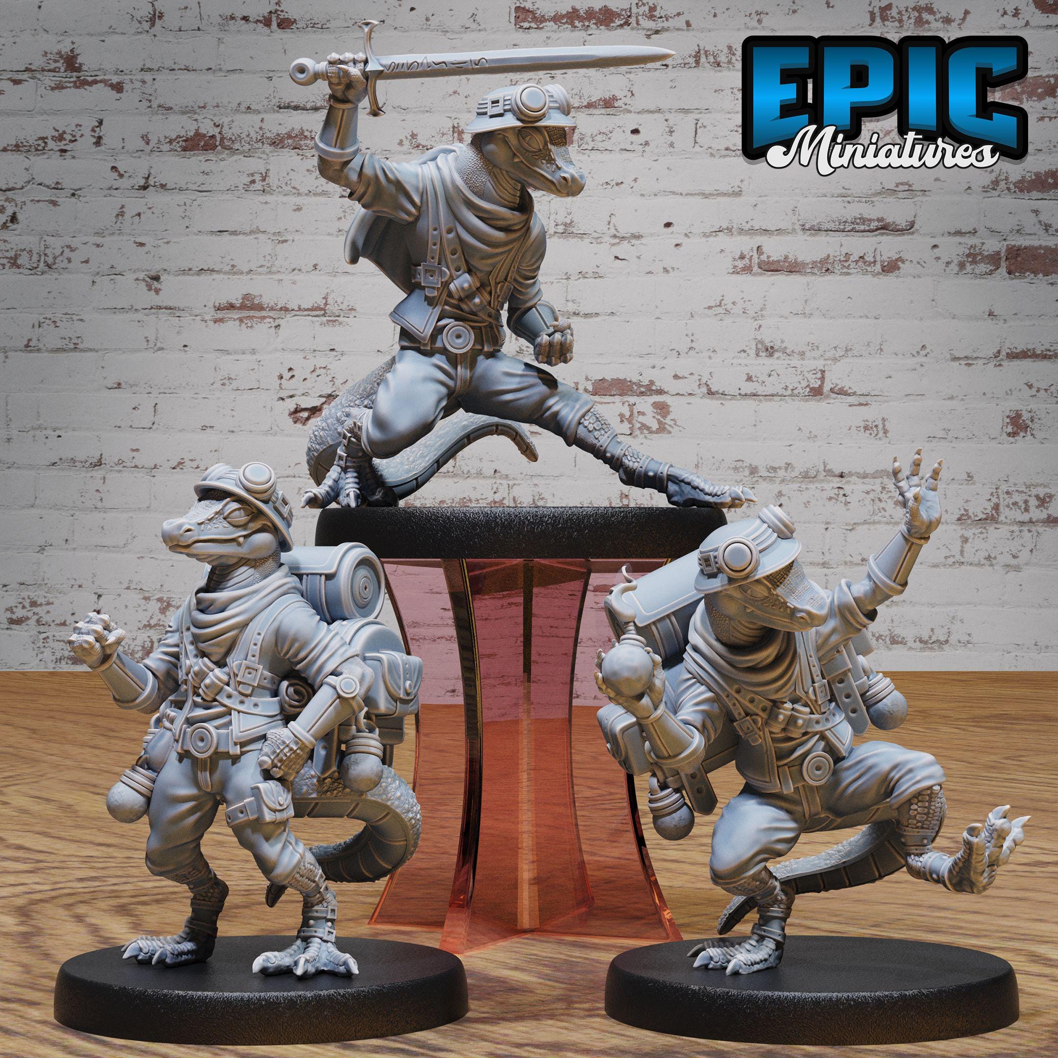 Brave lizard adventurer set | lizardfolk warrior | lizard men fighter | epic miniatures | unpainted miniature in resin