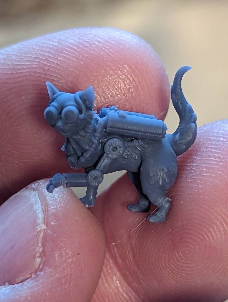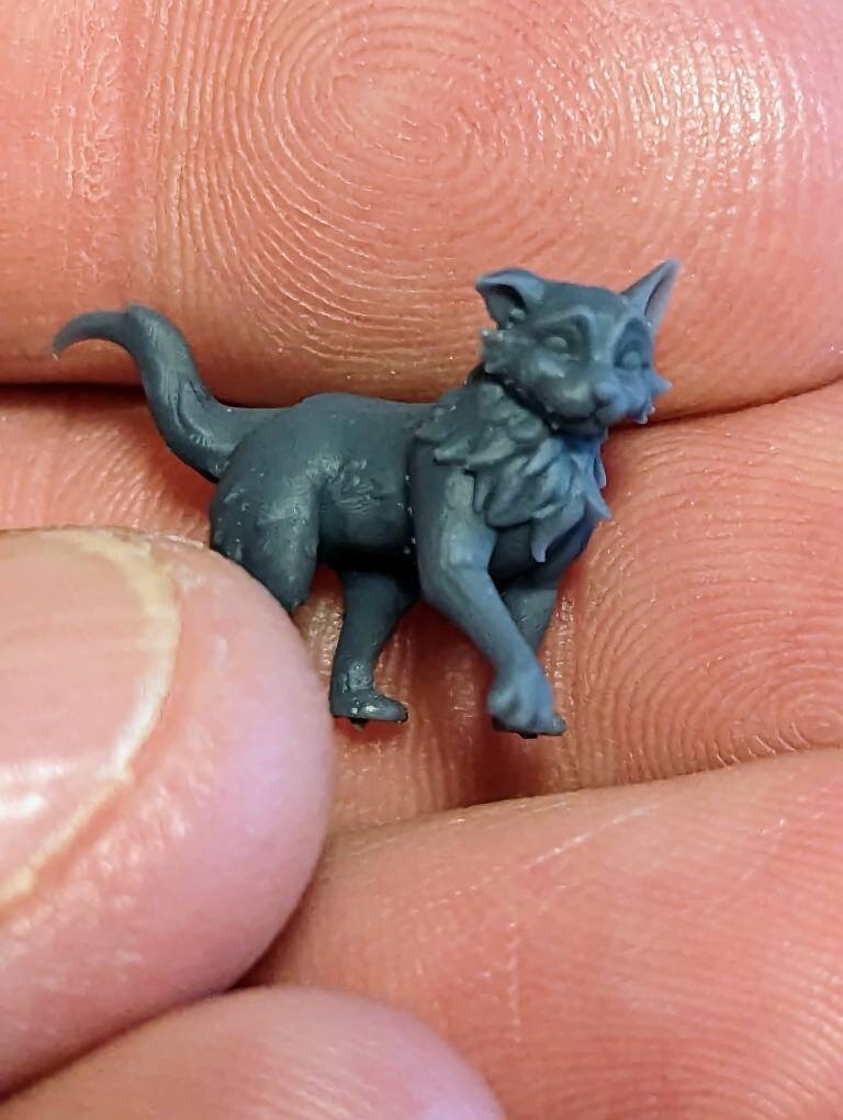 This is Bimba, the Bombay Cat from Cast n Play's Cordelia's Companions set. It is around 32mm scale. It should look like a heroic animal/companion next to another 32mm miniature.