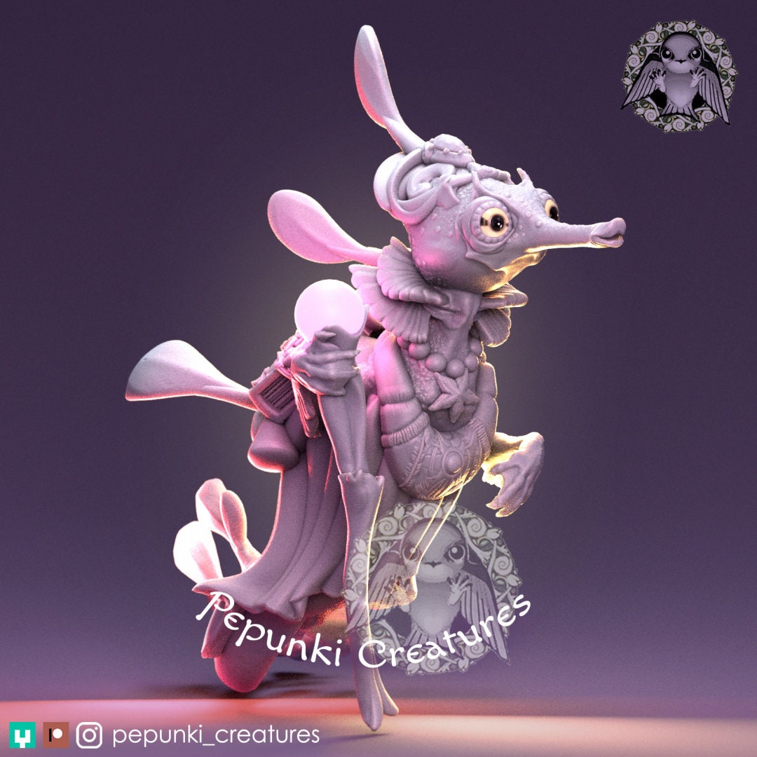 Seahorse Sorceress | Pepunki Creatures | UNPAINTED Miniature in Resin